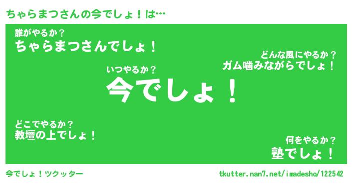 | 肩書あだ名 | 『ちゃらまつ社長』『ちゃらまつ総理大臣』 |