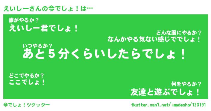 | 意味不明あだ名 | 『ペロリンえいしー』『永久保存えいしー』 |