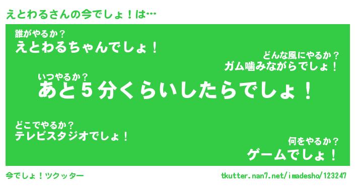 | 意味不明あだ名 | 『ペロリンえとわる』『永久保存えとわる』 |