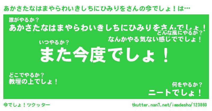 | ヘコむあだ名 | 『あかにゅー』『牛乳』『あかっちょ』 |