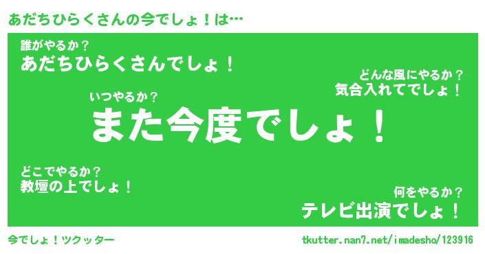 | 肩書あだ名 | 『あだちひらく社長』『あだちひらく団長』 |