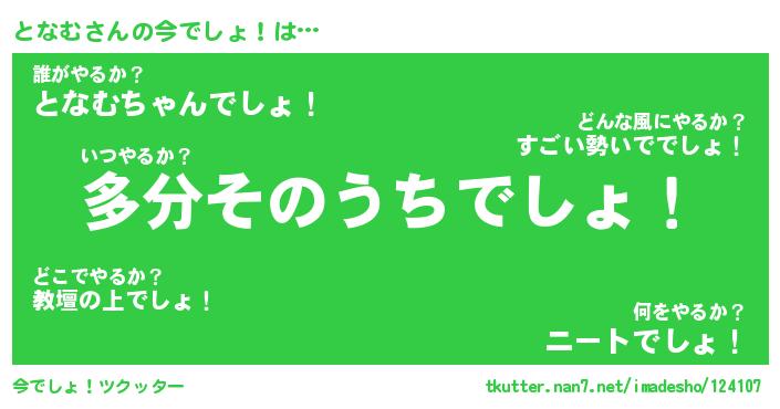 | ヘコむあだ名 | 『となにゅー』『レバニラ』『となを』 |