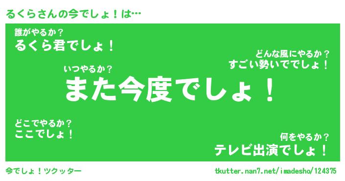 | ヘコむあだ名 | 『るくもー』『なまこ酢』『るく太郎』 |