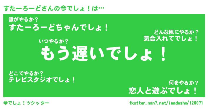 | 肩書あだ名 | 『すたーろーどCEO』『すたーろーど大統領』 |