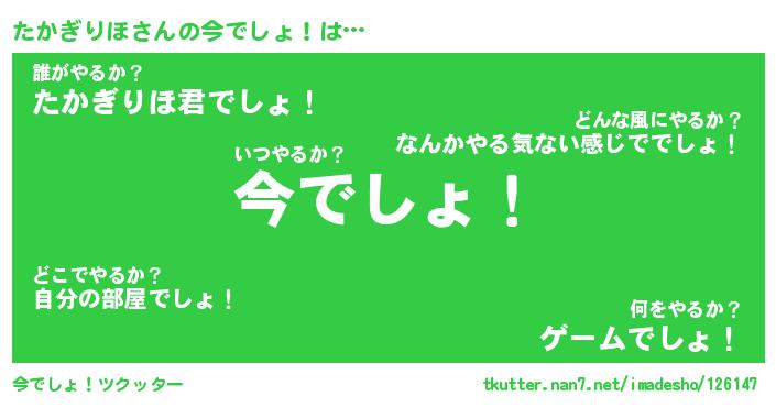 | ヘコむあだ名 | 『たかもー』『なまこ酢』『たか太郎』 |