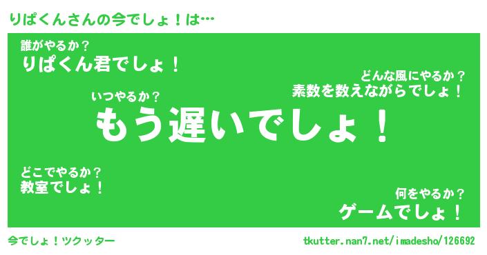 | 伝説のあだ名 | 『伝説のスナイパーりぱくん』 |