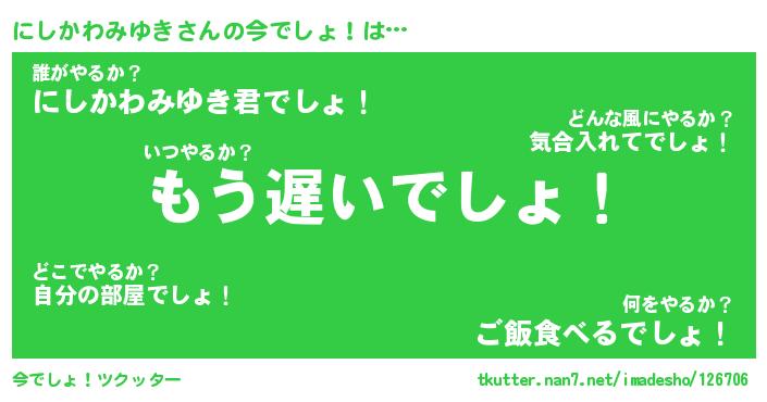 | ヘコむあだ名 | 『にしにー』『なまこ酢』『にしを』 |