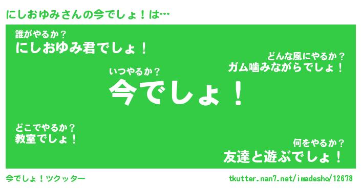 | 肩書あだ名 | 『にしおゆみ御曹司』『にしおゆみ大統領』 |