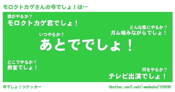 | ヘコむあだ名 | 『モロもー』『なまこ酢』『モロっぺ』 |