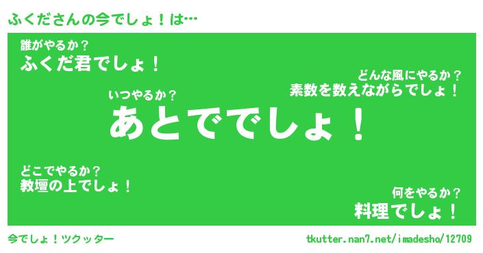 | 料理風あだ名 | 『節約★ふくだと油揚げの玉子丼』 |