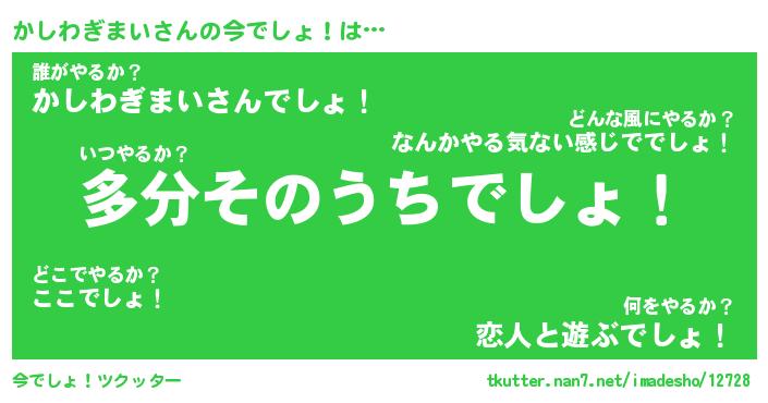 | 胡散臭い通販商品みたいなあだ名 | 『モテモテ間違いなしブレスレット…その名も「かしわぎまい」』 |