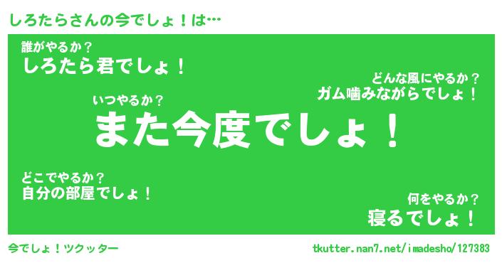 | 意味不明あだ名 | 『ペロリンしろたら』『永久保存しろたら』 |