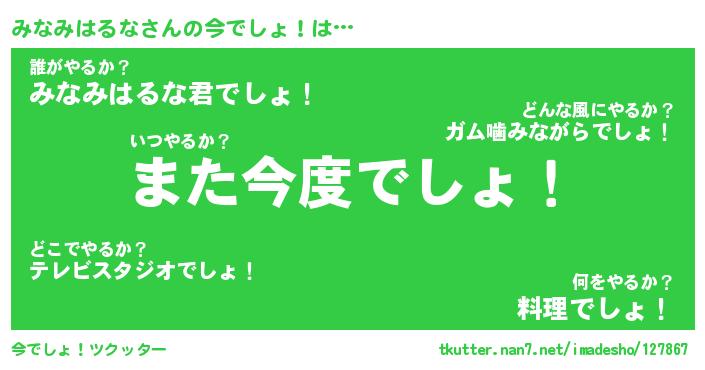 | ヒーロー風カッコイイあだ名 | 『スーパーミナミハルナ』『幻影騎士ミナ』 |