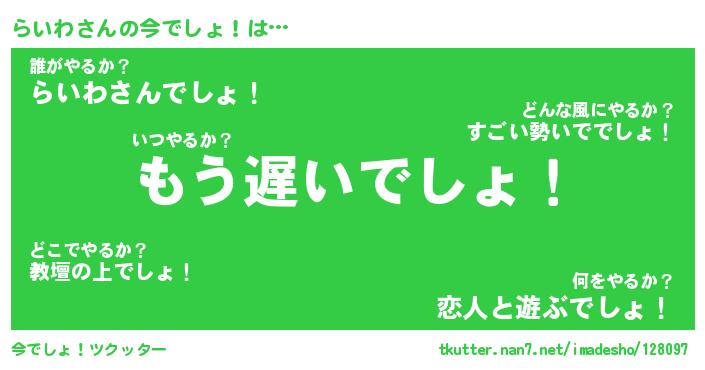 | 肩書あだ名 | 『らいわCEO』『らいわ大統領』 |