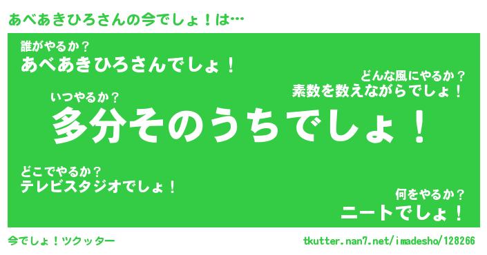 | 肩書あだ名 | 『あべあきひろ店長』『あべあきひろ班長』 |