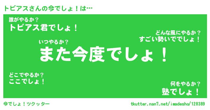 | ヒーロー風カッコイイあだ名 | 『スーパートビアス』『幻影騎士トビ』 |