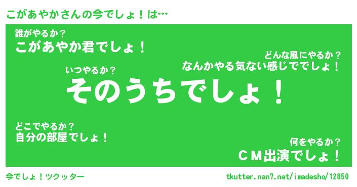 | 肩書あだ名 | 『こがあやか店長』『こがあやか総理大臣』 |