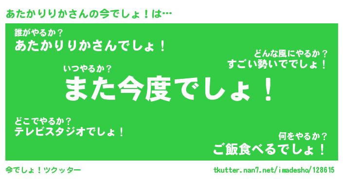 | 料理風あだ名 | 『ネギたっぷりあたかりりかの南蛮漬け』 |
