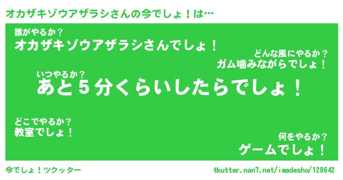 | 男性向けラノベタイトル風あだ名 | 『オカザキゾウアザラシアートオンライン』 |