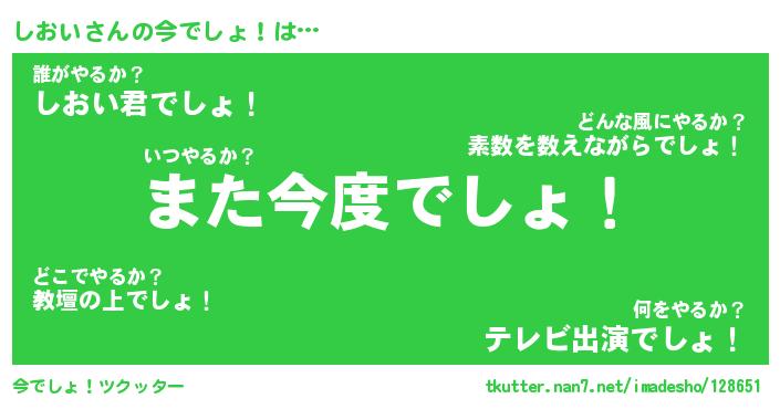 | 肩書あだ名 | 『しおい店長』『しおい総理大臣』 |
