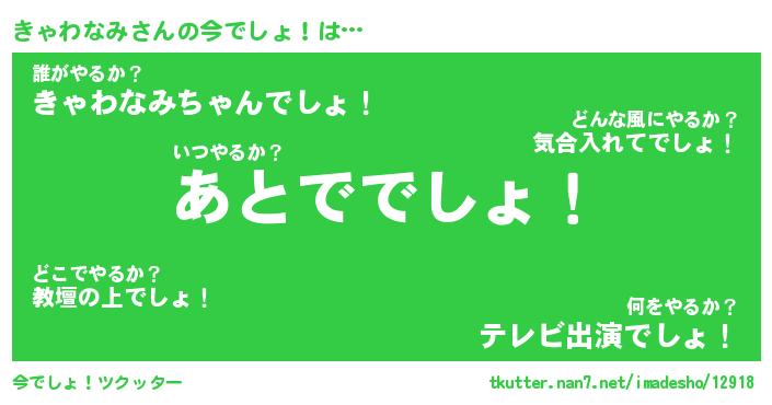 | 肩書あだ名 | 『きゃわなみ店長』『きゃわなみ総理大臣』 |