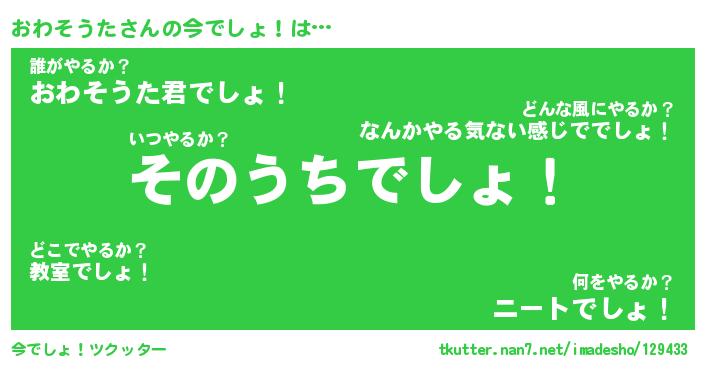 | 2回繰り返すあだ名 | 『おわおわ』『おおわわ』『にたにた』 |
