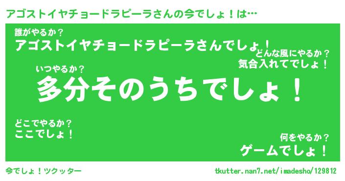 | 男性向けラノベタイトル風あだ名 | 『アゴストイヤチョードラピーラの憂鬱』 |