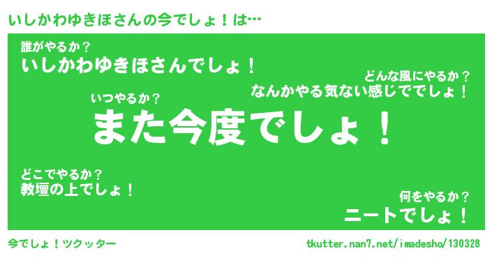 | 胡散臭い通販商品みたいなあだ名 | 『億万長者になれるブレスレット…その名も「いしかわゆきほ」』 |