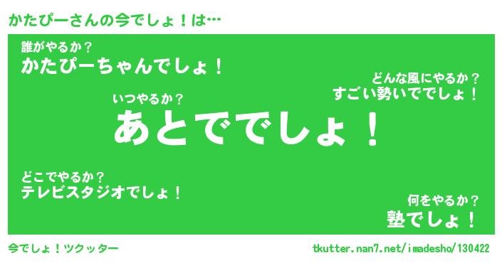 | 意味不明あだ名 | 『ペロリンかたぴー』『永久保存かたぴー』 |