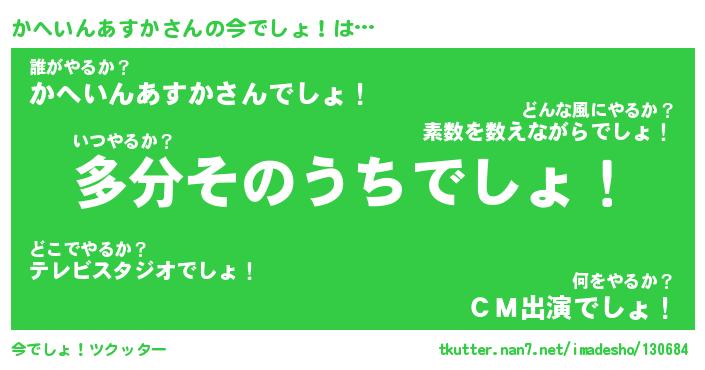 | 恥ずかしいあだ名 | 『プリティーかへいんあすか』『かへちん』 |