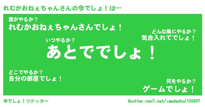 | 意味不明あだ名 | 『ペロリンれむかおねぇちゃん』 |