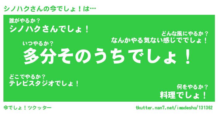 | 料理風あだ名 | 『節約★シノハクと油揚げの玉子丼』 |