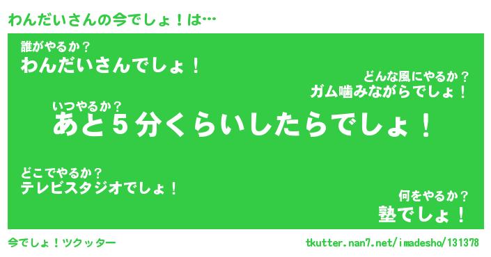 | 意味不明あだ名 | 『ペロリンわんだい』『永久保存わんだい』 |