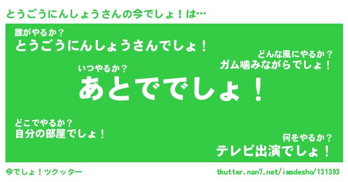 | ピコ太郎風あだ名 | 『トコ三郎』『ピト太郎』『トウ六郎』 |