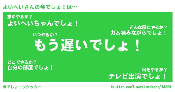 | 意味不明あだ名 | 『ペロリンよいへい』『永久保存よいへい』 |