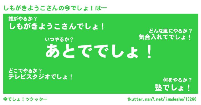 | 2回繰り返すあだ名 | 『しもしも』『ししもも』『ごたごた』 |