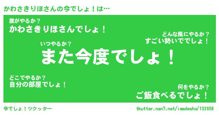 | ヒーロー風カッコイイあだ名 | 『スーパーカワサキリホ』『幻影騎士カワ』 |
