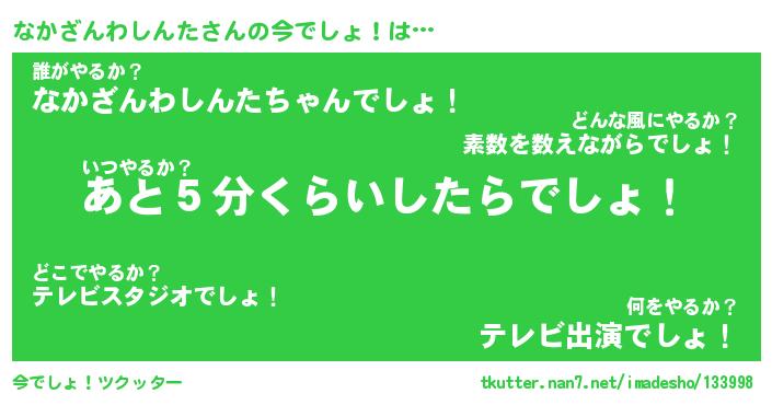 | ツイッター | なかざんわしんたさんのツイッターID『dendenmushi_kun』 |