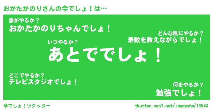 | 武田徳子だからのんちゃん(略 …「」 | 10月08日 10:21 |