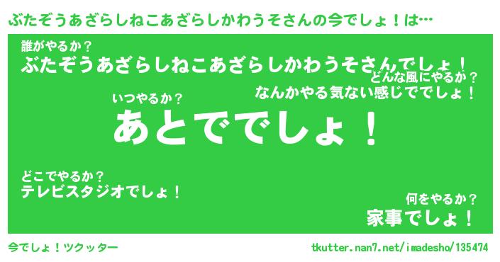 | 2回繰り返すあだ名 | 『ぶたぶた』『ぶぶたた』『いらいら』 |