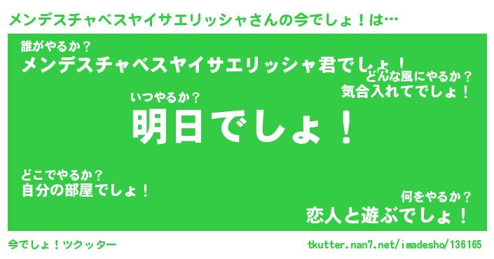 | ツイッター | メンデスチャベスヤイサエリッシャさんのツイッターID『namakemono_nyan』 |