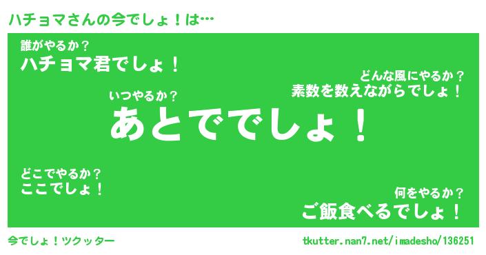 | 料理風あだ名 | 『節約★ハチョマと油揚げの玉子丼』 |