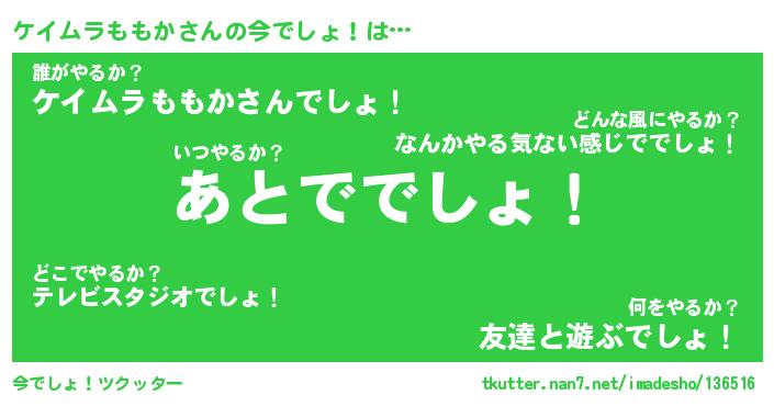| 意味不明あだ名 | 『ペロリンケイムラももか』 |