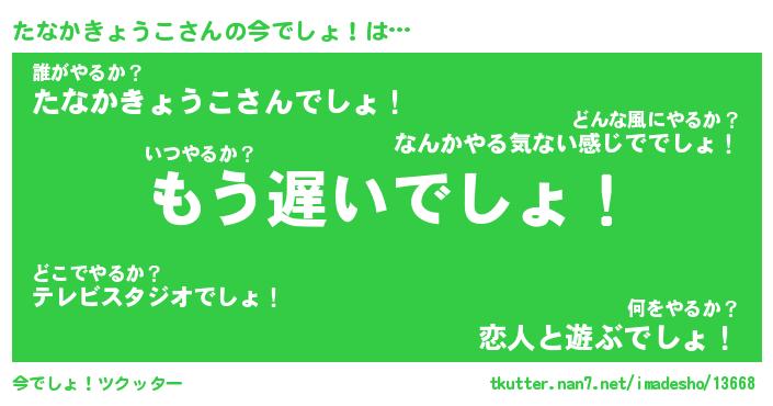 | 肩書あだ名 | 『たなかきょうこ御曹司』 |