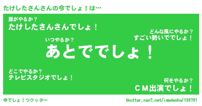 | ヒーロー風カッコイイあだ名 | 『スーパータケシタサン』『黄金騎士タケ』 |