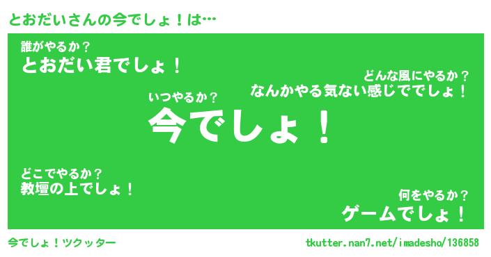 | 意味不明あだ名 | 『ペロリンとおだい』『永久保存とおだい』 |