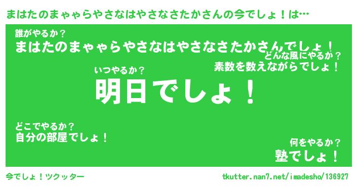 | 番長 | まはたのまゃゃらやさなはやさなさたか、またの名を・・・!『眠たげなまはたのまゃゃらやさなはやさなさたかっち』 |