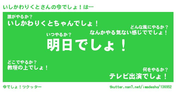 | 胡散臭い通販商品みたいなあだ名 | 『億万長者になれるブレスレット…その名も「いしかわりくと」』 |