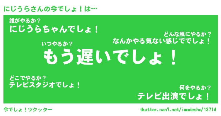 | 意味不明あだ名 | 『ペロリンにじうら』『永久保存にじうら』 |