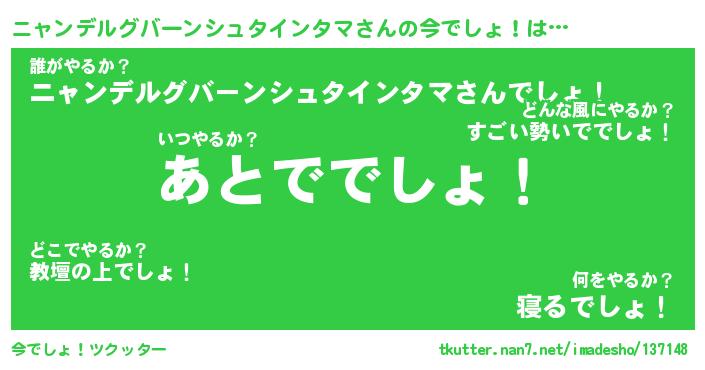 | ヒーロー風カッコイイあだ名 | 『スーパーニャンデルグバーンシュタインタマ』 |